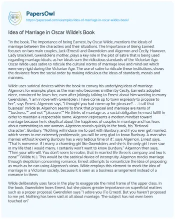 Idea of Marriage in Oscar Wilde's Book. (2021, May 24). Retrieved from https://hub.papersowl.com/examples/idea-of-marriage-in-oscar-wildes-book/