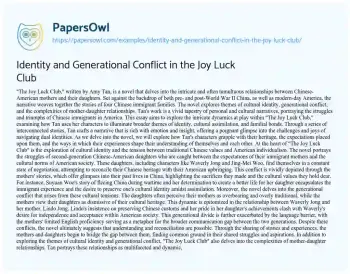 Identity and Generational Conflict in the Joy Luck Club
