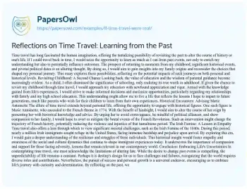 Reflections on Time Travel: Learning from the Past. (2021, May 10). Retrieved from https://hub.papersowl.com/examples/if-time-travel-were-real/