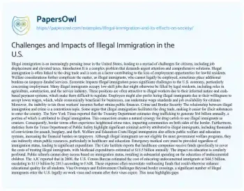 Challenges and Impacts of Illegal Immigration in the U.S.. (2019, Sep 17). Retrieved from https://hub.papersowl.com/examples/illegal-immigration-and-its-effects-on-society/