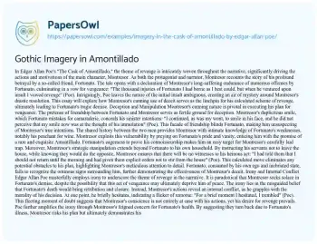 This essay will examine the use of imagery in Edgar Allan Poe’s “The Cask of Amontillado.” It will discuss how Poe’s vivid descriptions enhance the story’s mood and themes. Also at PapersOwl you can find more free essay examples related to Edgar Allan Poe.