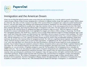 This essay will explore the relationship between immigrants and the American Dream, examining how immigration has shaped the notion of the Dream and its attainability. At PapersOwl too, you can discover numerous free essay illustrations related to American Dream.
