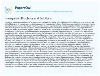 This essay explores the multifaceted problems associated with immigration and proposes viable solutions, emphasizing the need for international cooperation and comprehensive policy reforms.