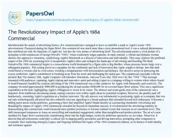 The Revolutionary Impact of Apple's 1984 Commercial. (2024, Jul 16). Retrieved from https://hub.papersowl.com/examples/impact-and-legacy-of-apples-1984-commercial/