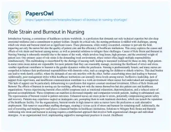 Role Strain and Burnout in Nursing. (2021, Oct 16). Retrieved from https://hub.papersowl.com/examples/impact-of-burnout-in-nursing-shortage/