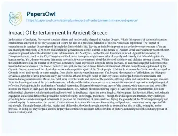 Impact Of Entertainment In Ancient Greece