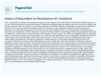 Impact of Naturalism on Renaissance Art: Analytical. (2024, Apr 14). Retrieved from https://hub.papersowl.com/examples/impact-of-naturalism-on-renaissance-art-analytical/