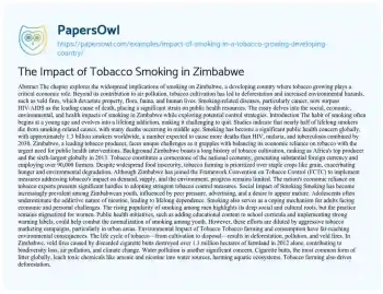 The Impact of Tobacco Smoking in Zimbabwe. (2020, Feb 06). Retrieved from https://hub.papersowl.com/examples/impact-of-smoking-in-a-tobacco-growing-developing-country/