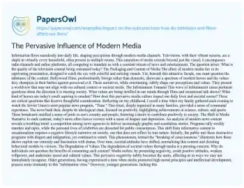 The Pervasive Influence of Modern Media. (2021, Jul 07). Retrieved from https://hub.papersowl.com/examples/impact-on-the-subconscious-how-do-television-and-films-affect-our-lives/
