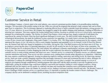 This essay explores the reasons behind Sears's decline, focusing on customer service as a critical factor, and proposes strategies for revitalizing the company.