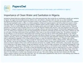 Importance of Clean Water and Sanitation in Nigeria. (2023, Aug 19). Retrieved from https://hub.papersowl.com/examples/importance-of-clean-water-and-sanitation-in-nigeria/
