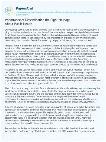Importance of Dissemination the Right Message About Public Health. (2023, Mar 26). Retrieved from https://hub.papersowl.com/examples/importance-of-dissemination-the-right-message-about-public-health/