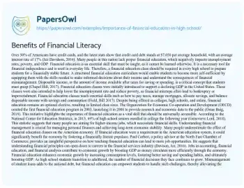 Benefits of Financial Literacy. (2022, Aug 18). Retrieved from https://hub.papersowl.com/examples/importance-of-financial-education-in-high-school/
