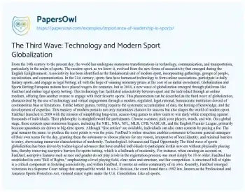 The Third Wave: Technology and Modern Sport Globalization. (2022, Apr 09). Retrieved from https://hub.papersowl.com/examples/importance-of-leadership-in-sports/