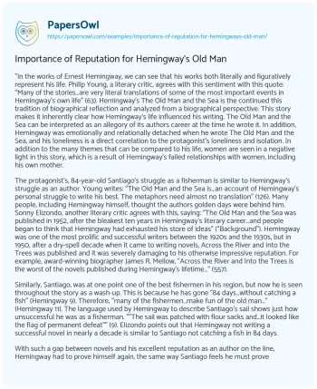 Importance of Reputation for Hemingway's Old Man. (2021, May 27). Retrieved from https://hub.papersowl.com/examples/importance-of-reputation-for-hemingways-old-man/