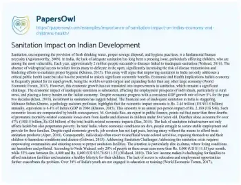 Sanitation Impact on Indian Development. (2023, Aug 10). Retrieved from https://hub.papersowl.com/examples/importance-of-sanitation-impact-on-indias-economy-and-childrens-health/