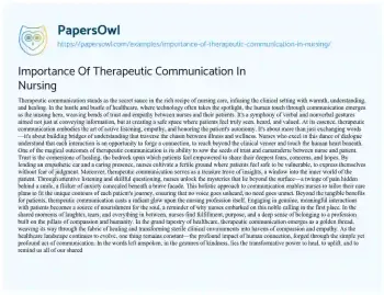 Importance Of Therapeutic Communication In Nursing. (2024, Apr 29). Retrieved from https://hub.papersowl.com/examples/importance-of-therapeutic-communication-in-nursing/