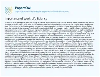 Importance of Work-Life Balance. (2024, Dec 27). Retrieved from https://hub.papersowl.com/examples/importance-of-work-life-balance/