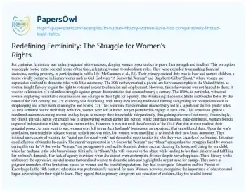 Redefining Femininity: The Struggle for Women's Rights. (2021, Nov 30). Retrieved from https://hub.papersowl.com/examples/in-human-history-women-have-had-comparatively-limited-legal-rights/