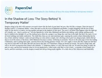In the Shadow of Loss: The Story Behind 'A Temporary Matter'. (2023, Dec 28). Retrieved from https://hub.papersowl.com/examples/in-the-shadow-of-loss-the-story-behind-a-temporary-matter/