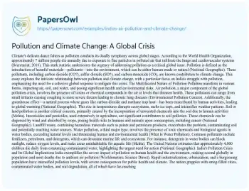 This essay explores the intricate relationship between pollution and climate change, with a particular focus on India's struggle with pollution, emphasizing the need for a cohesive global response to mitigate this crisis.