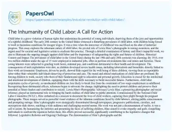The Inhumanity of Child Labor: A Call for Action. (2019, Oct 19). Retrieved from https://hub.papersowl.com/examples/industrial-revolution-with-child-labor/