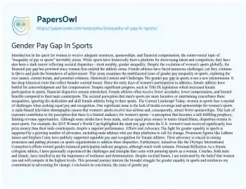 This essay will address the ongoing issue of pay inequality in sports. It will examine the disparities between genders, the underlying reasons for this gap, and its broader implications for society and professional sports. Moreover, at PapersOwl, there are additional free essay samples connected to Gender.