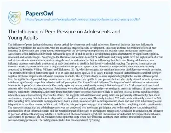 The Influence of Peer Pressure on Adolescents and Young Adults. (2021, May 24). Retrieved from https://hub.papersowl.com/examples/influence-among-adolescents-and-young-adults/