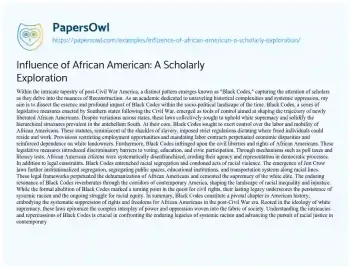 Influence of African American: A Scholarly Exploration. (2024, Mar 01). Retrieved from https://hub.papersowl.com/examples/influence-of-african-american-a-scholarly-exploration/