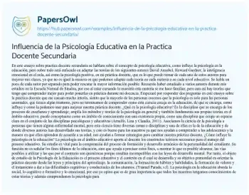 Influencia de la Psicología Educativa en la Practica Docente Secundaria