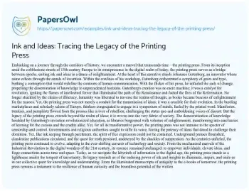 Ink and Ideas: Tracing the Legacy of the Printing Press. (2024, Mar 18). Retrieved from https://hub.papersowl.com/examples/ink-and-ideas-tracing-the-legacy-of-the-printing-press/