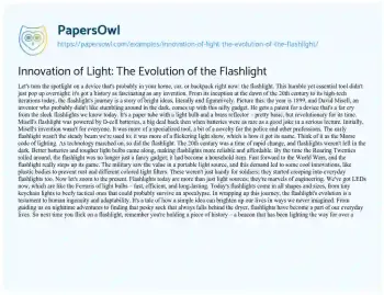 Innovation of Light: The Evolution of the Flashlight. (2023, Dec 15). Retrieved from https://hub.papersowl.com/examples/innovation-of-light-the-evolution-of-the-flashlight/