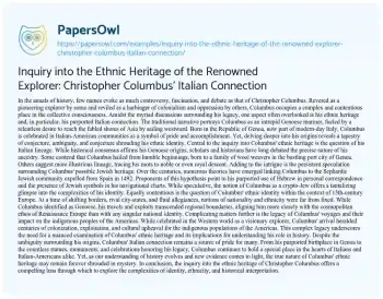 Inquiry into the Ethnic Heritage of the Renowned Explorer: Christopher Columbus' Italian Connection. (2024, Jun 01). Retrieved from https://hub.papersowl.com/examples/inquiry-into-the-ethnic-heritage-of-the-renowned-explorer-christopher-columbus-italian-connection/