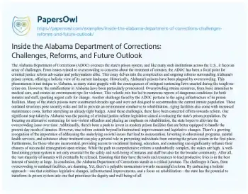 Inside the Alabama Department of Corrections: Challenges, Reforms, and Future Outlook. (2023, Oct 26). Retrieved from https://hub.papersowl.com/examples/inside-the-alabama-department-of-corrections-challenges-reforms-and-future-outlook/