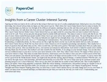 Insights from a Career Cluster Interest Survey. (2024, Sep 17). Retrieved from https://hub.papersowl.com/examples/insights-from-a-career-cluster-interest-survey/