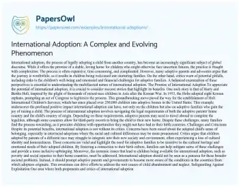 International Adoption: A Complex and Evolving Phenomenon. (2020, Apr 20). Retrieved from https://hub.papersowl.com/examples/international-adoptions/