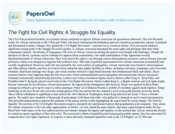 The Fight for Civil Rights: A Struggle for Equality. (2021, May 25). Retrieved from https://hub.papersowl.com/examples/international-civil-rights-walk-of-fame-rosa-parks/