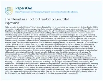The Internet as a Tool for Freedom or Controlled Expression. (2019, Oct 26). Retrieved from https://hub.papersowl.com/examples/internet-censorship-should-it-be-allowed/