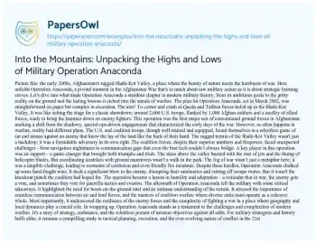 Into the Mountains: Unpacking the Highs and Lows of Military Operation Anaconda