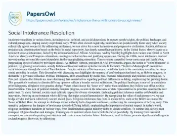 Social Intolerance Resolution. (2019, May 21). Retrieved from https://hub.papersowl.com/examples/intolerance-the-unwillingness-to-accept-views/