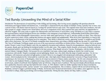 Ted Bundy: Unraveling the Mind of a Serial Killer. (2022, Nov 14). Retrieved from https://hub.papersowl.com/examples/introduction-to-the-life-of-ted-bundy/