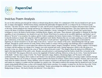 This essay will analyze “Invictus,” a poem by William Ernest Henley. It will explore the themes of resilience and determination in the face of adversity, as conveyed through Henley’s powerful words. The piece will discuss the poem’s historical context and its enduring appeal as a source of inspiration. PapersOwl showcases more free essays that are examples of Courage.