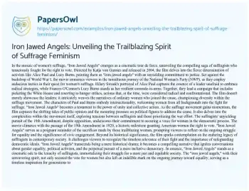 Iron Jawed Angels: Unveiling the Trailblazing Spirit of Suffrage Feminism. (2024, Feb 01). Retrieved from https://hub.papersowl.com/examples/iron-jawed-angels-unveiling-the-trailblazing-spirit-of-suffrage-feminism/