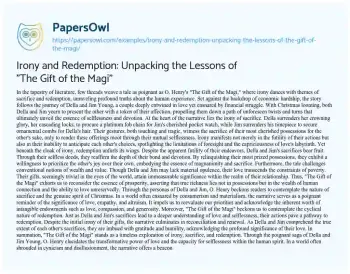 Irony and Redemption: Unpacking the Lessons of "The Gift of the Magi". (2024, Mar 25). Retrieved from https://hub.papersowl.com/examples/irony-and-redemption-unpacking-the-lessons-of-the-gift-of-the-magi/