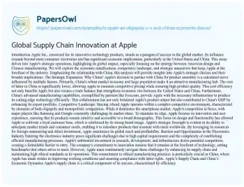 Global Supply Chain Innovation at Apple. (2023, Aug 20). Retrieved from https://hub.papersowl.com/examples/is-apple-an-oligopoly-u-s-and-chinas-economic-dance/