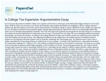 Is College Too Expensive: Argumentative Essay