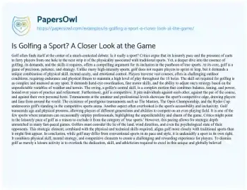 Is Golfing a Sport? A Closer Look at the Game. (2024, Mar 25). Retrieved from https://hub.papersowl.com/examples/is-golfing-a-sport-a-closer-look-at-the-game/