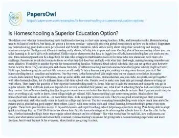 Is Homeschooling a Superior Education Option?. (2024, Jul 16). Retrieved from https://hub.papersowl.com/examples/is-homeschooling-a-superior-education-option/