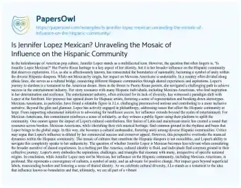 Is Jennifer Lopez Mexican? Unraveling the Mosaic of Influence on the Hispanic Community. (2023, Dec 22). Retrieved from https://hub.papersowl.com/examples/is-jennifer-lopez-mexican-unraveling-the-mosaic-of-influence-on-the-hispanic-community/