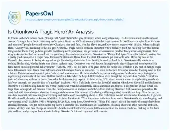Is Okonkwo A Tragic Hero? An Analysis. (2024, Sep 17). Retrieved from https://hub.papersowl.com/examples/is-okonkwo-a-tragic-hero-an-analysis/